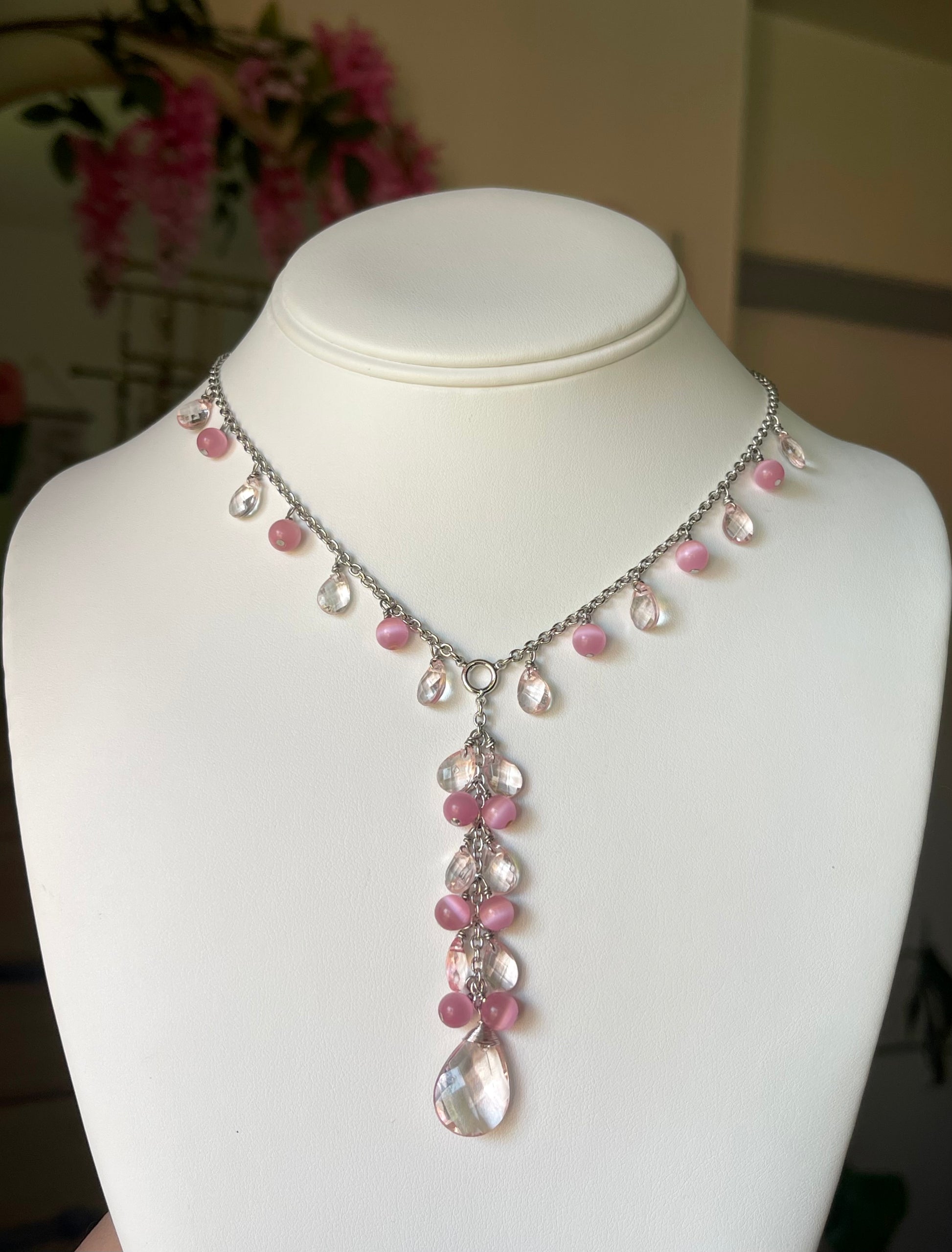 made with glass beads + pearls, thus item is fragile and should not be thrown/dropped or at risk of breaking.