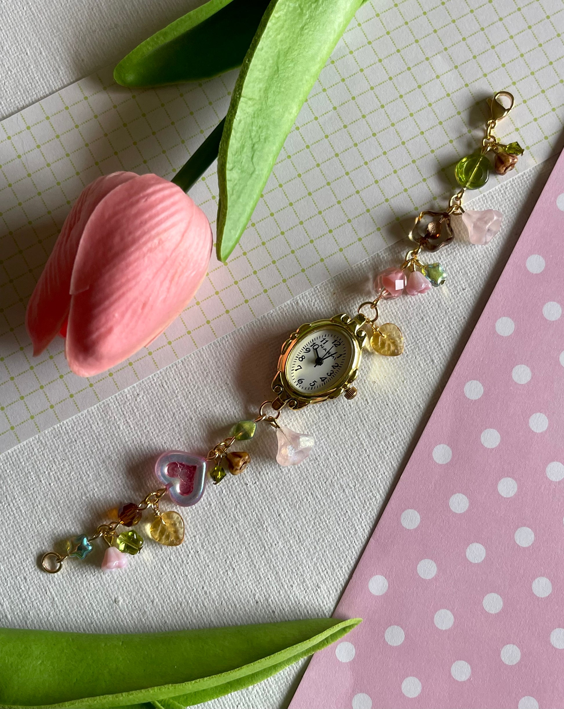 made with glass beads + pearls, thus item is fragile and should not be thrown/dropped or at risk of breaking.
