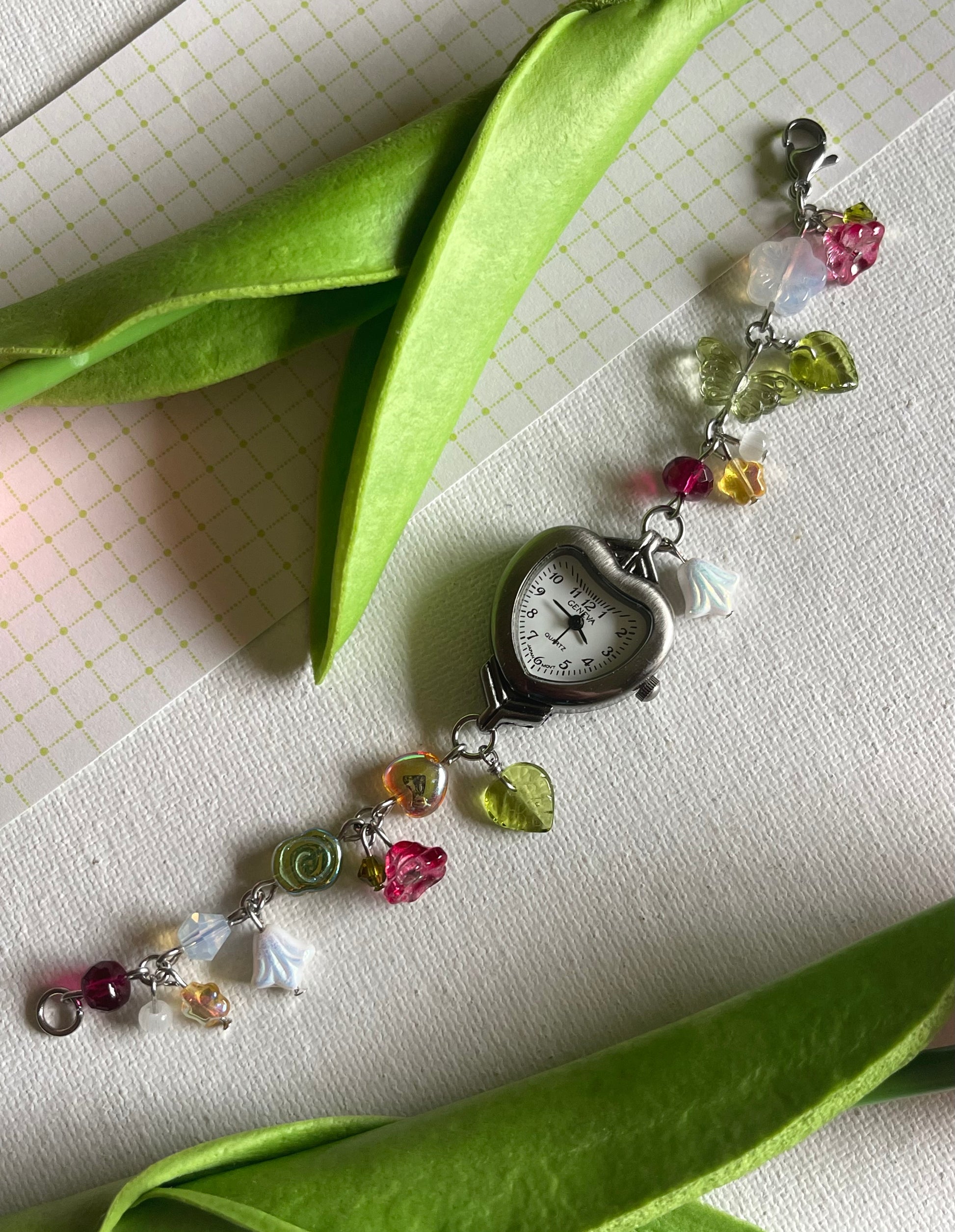 made with glass beads + pearls, thus item is fragile and should not be thrown/dropped or at risk of breaking.