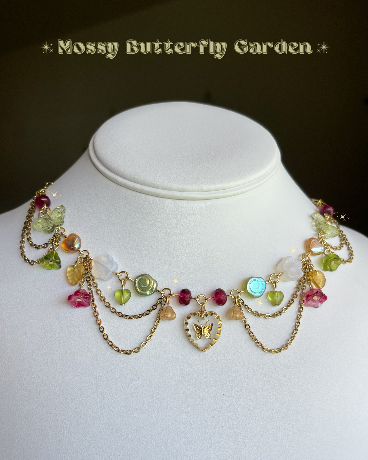MATERIAL: made with gold plated stainless steel hardware, glass beads, high quality Czech beads, crystal bicone, a hand carved antique pendant and lots of love!