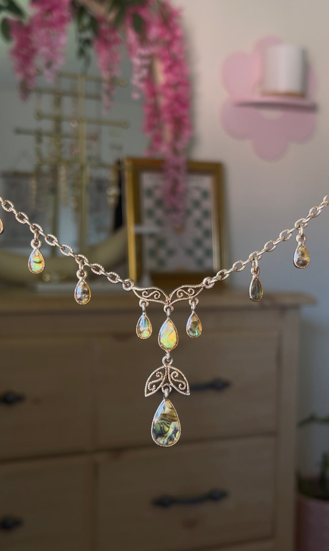 made with glass beads + pearls, thus item is fragile and should not be thrown/dropped or at risk of breaking.
